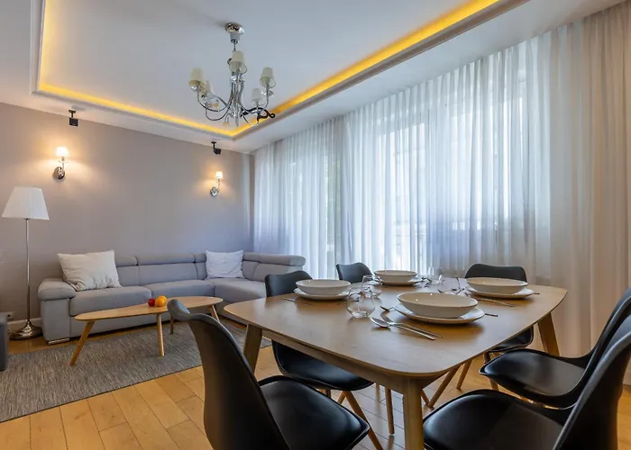 Set just 0.8 km from the performing arts theater "Teatr Na Plazy", the 64 m^2 Nobleman Apartments Sopot comprises an adjoining terrace and a balcony overlooking the courtyard. This 1-bedroom apartment features Wi-Fi, along with complimentary private parking for guests travelling by car.